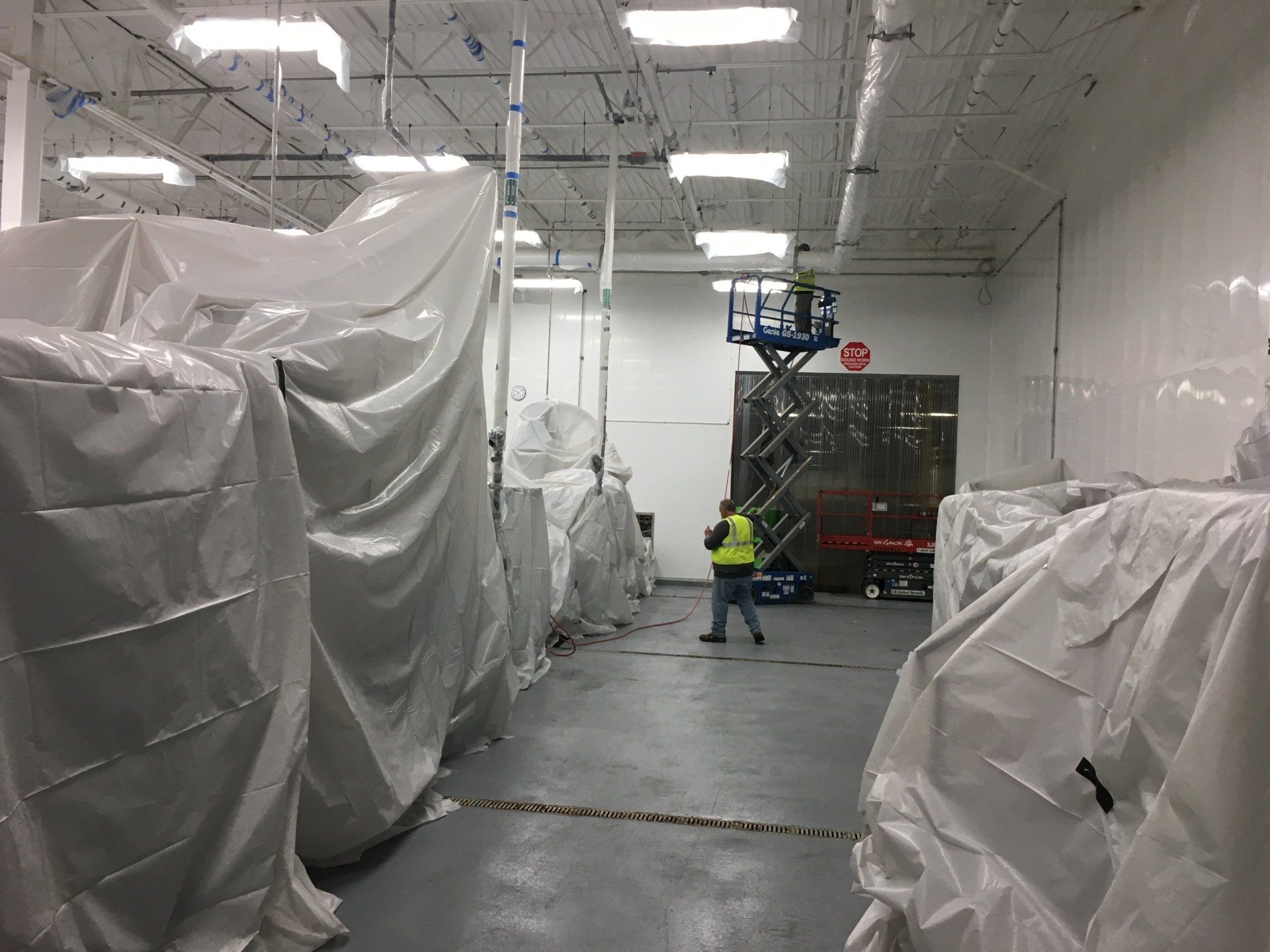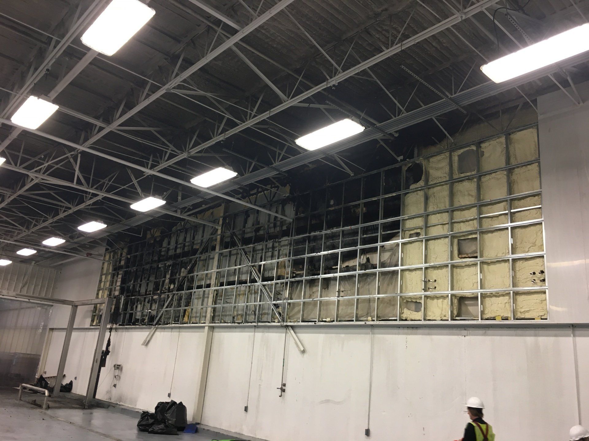 Mr. Chip’s production facility suffered a fire loss from an outside contractor. We worked 24/7 for 5 weeks to decontaminate and renovate the 106,000 sqft canning and processing areas. ACI worked closely with FDA, GDA and management to alleviate production loss and restart production. The scope of work included structural steel replacement, sheet metal fabrication, food grade clean room vinyl, removal of all fire damage and contaminates.